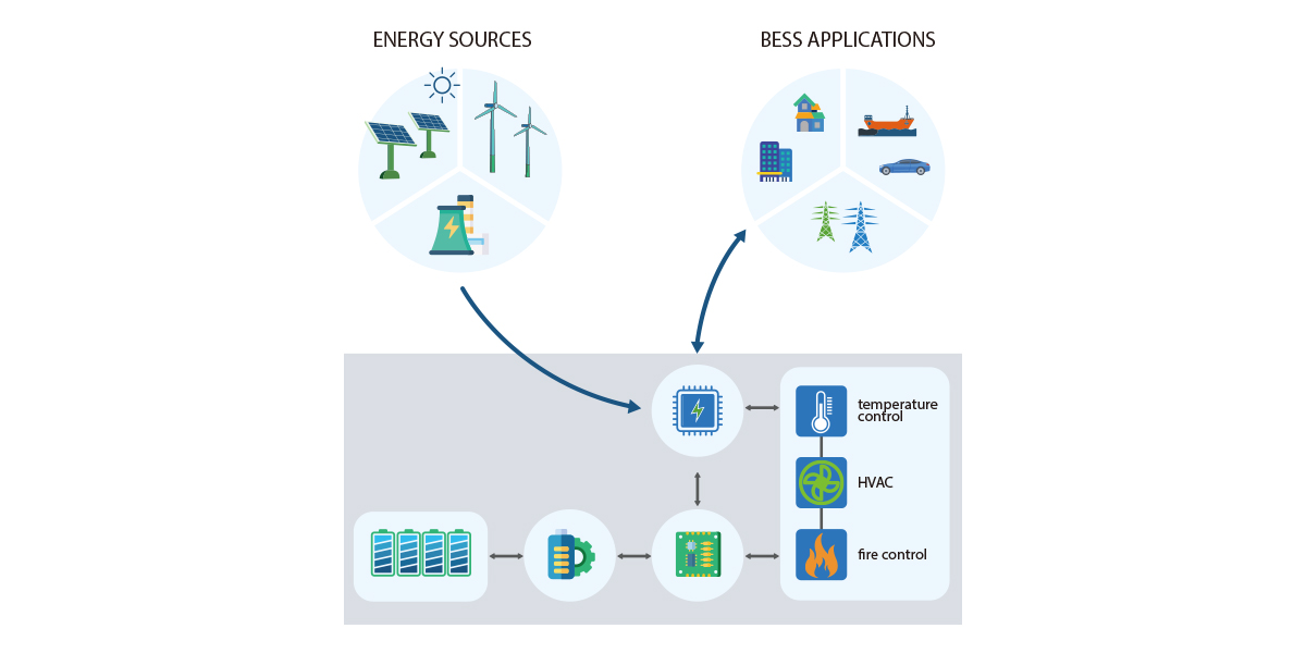يُستخدم هذا النظام بشكل رئيسي في المصانع والمجمعات التجارية وأماكن مماثلة، حيث يُسهل وظائف تقليل الذروة، وتخزين الطاقة في غير أوقات الذروة، والطاقة الاحتياطية.